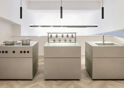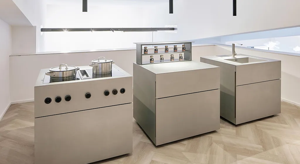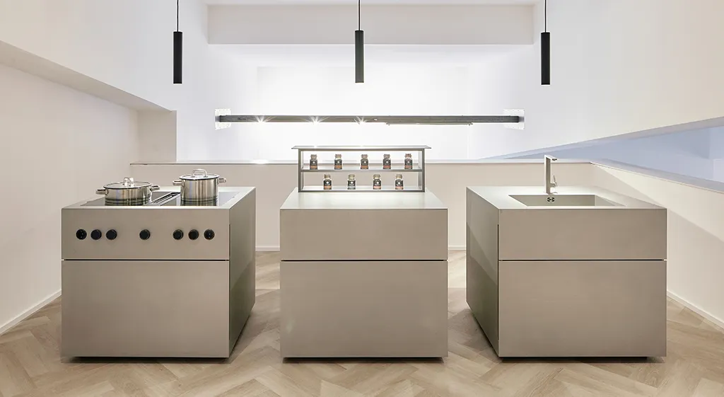 Inmitten der schlichten Eleganz liegt ein Design, das Mut zur Individualität zeigt. Unser zeitloses Konzept setzt auf Geradlinigkeit mit markanten Akzenten, die fernab von kurzlebigen Trends neue Maßstäbe setzen. Inspiriert von der klassischen Küchenästhetik interpretieren wir die Küchenelemente auf innovative Weise neu. Unsere CUBE‘s präsentieren sich in einer exklusiven Auswahl an Materialien, von edlem Naturstein bis hin zu elegantem Edelstahl und verleihen jeder Küche eine unvergleichliche Raffinesse.