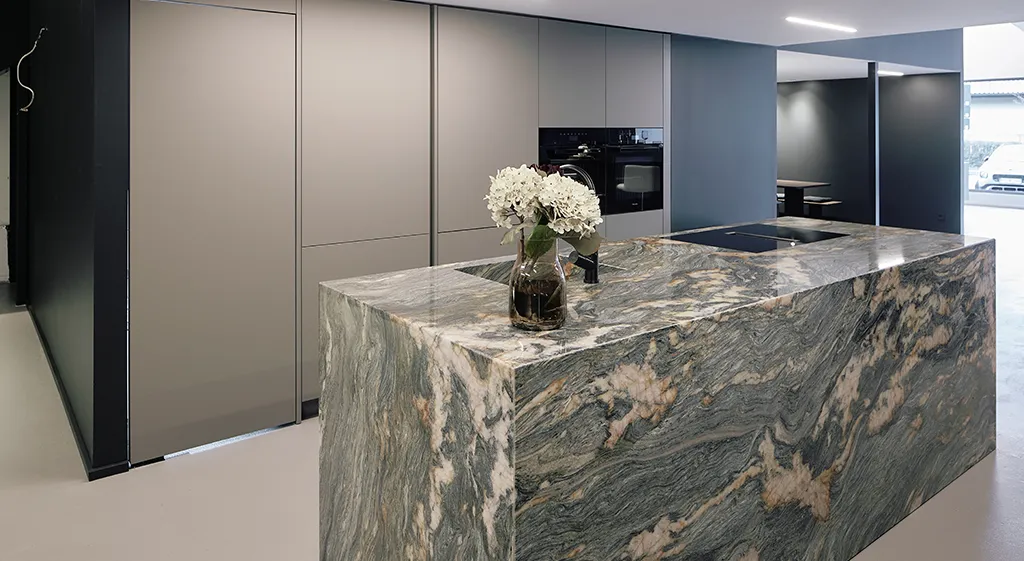 Unsere Steinküchen verbinden natürliche Eleganz mit herausragender Funktionalität. Von Quarz über Schiefer bis Marmor – jede Küche wird aus sorgfältig ausgewählten Materialien gefertigt, deren einzigartige Maserung bewusst ins Design integriert wird. Mit durchdachten Details wie nahtlosen Arbeitsflächen, versteckten Backup-Küchen und perfekt abgestimmten Elementen wie Eichenfurnier oder Quarzit Tauerngrün schaffen wir Küchen, die Individualität und Stil ausstrahlen. Ob rustikal oder modern, jede unserer Natursteinküchen ist ein Unikat, das Ihr Zuhause bereichert und kulinarische Momente zu einem Erlebnis macht.